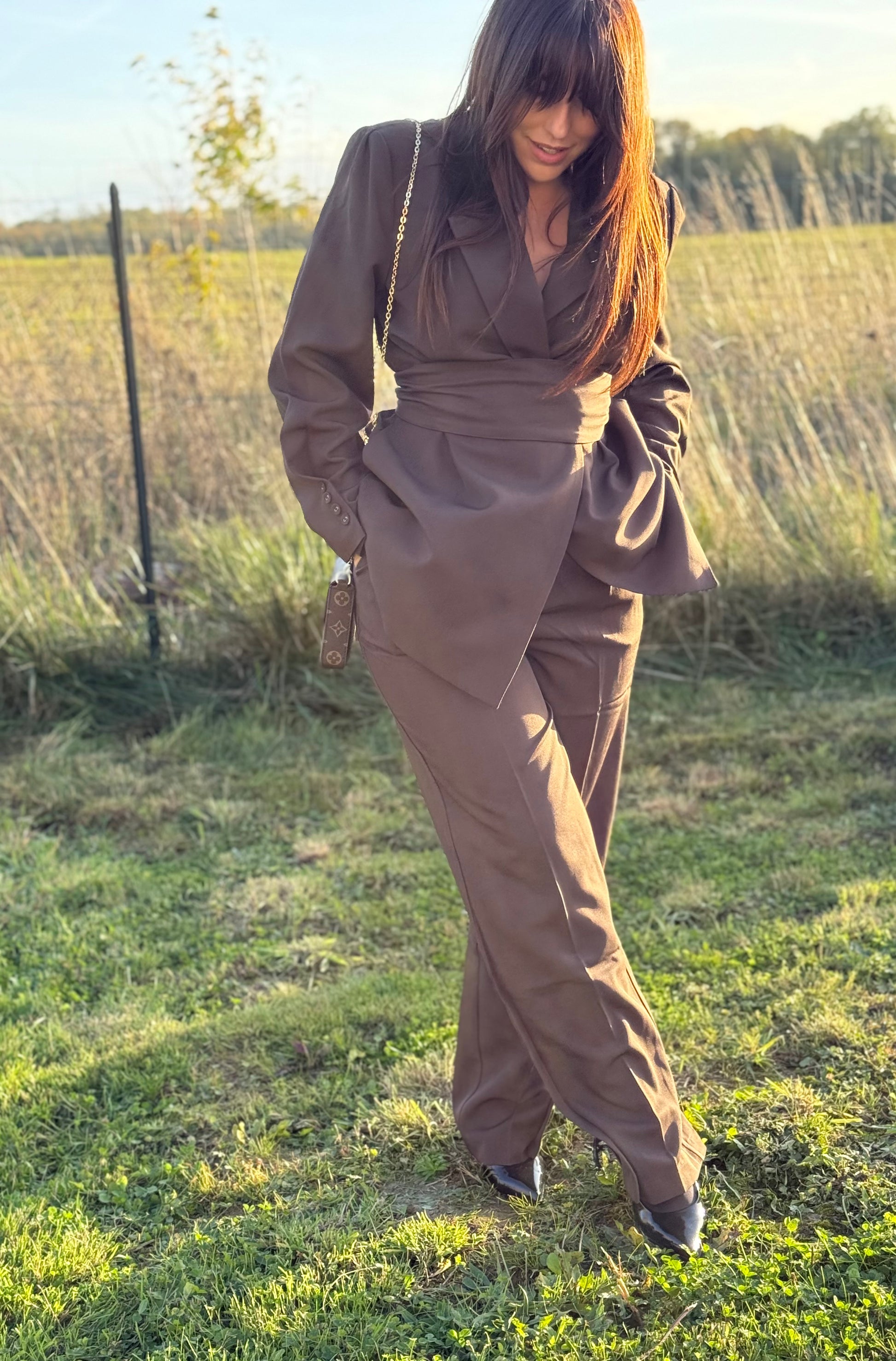 Ensemble Blazer à ceinture chocolat